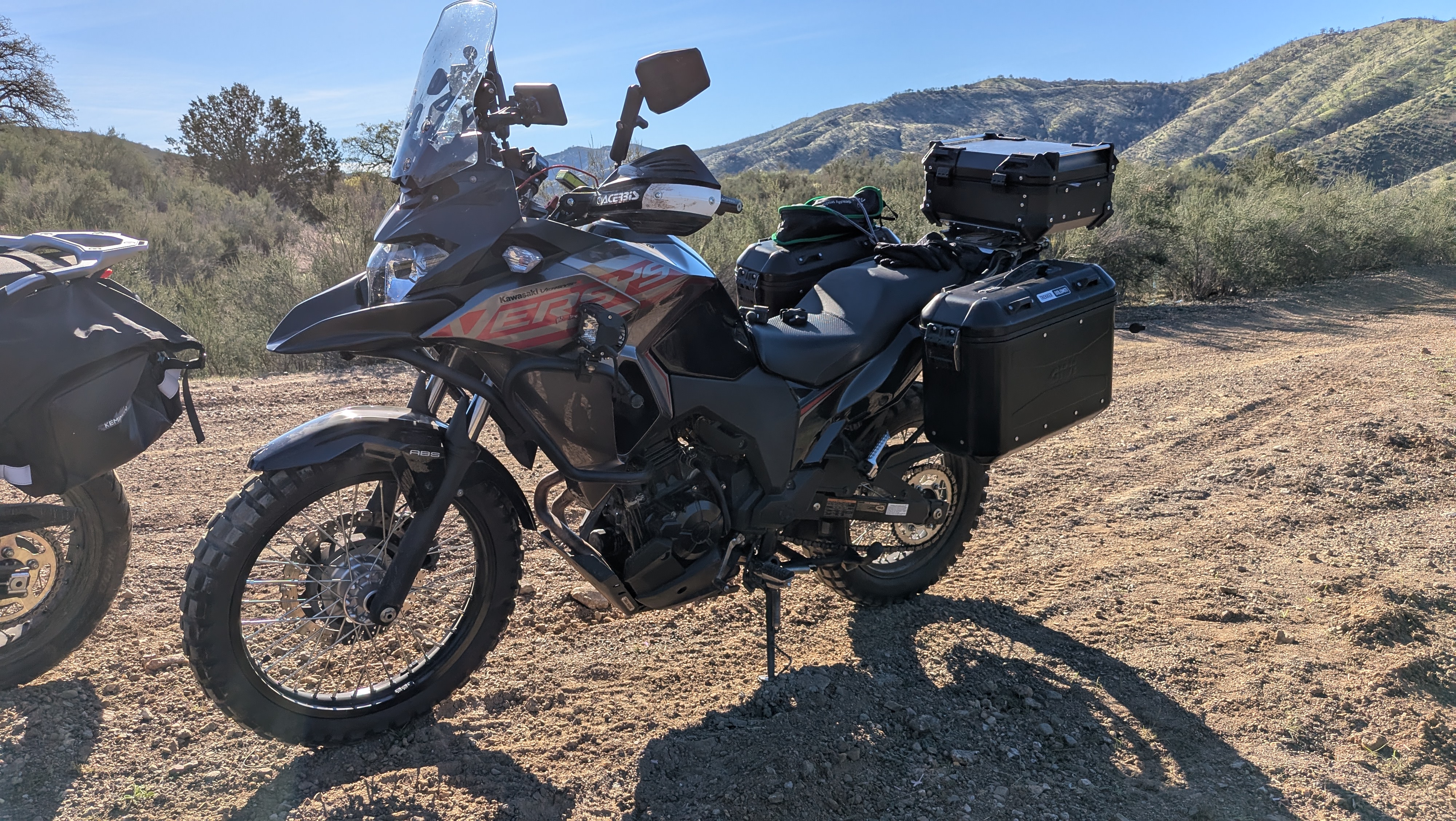 Accessory-wise, outfitting the bike with Givi crash bars and side bags not only provides extra protection and storage but also enhances its visual presence. The crash bars have saved the plastics more than once during tip-overs on rough trails, and the side bags are perfect for weekend camping trips or long adventure routes. Together, they make the Versys-X feel like a mini ADV touring rig.